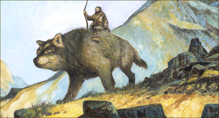 At last the man noticed that the giant dog used to disappear occasionally on long excursions inland, and sometimes it came back with the leg of an inland-dweller. Then he understood that it attacked the inland-dwellers, and brought its master their legs. That they were the legs of inland-dwellers he could tell by their having boots on with long hairs.